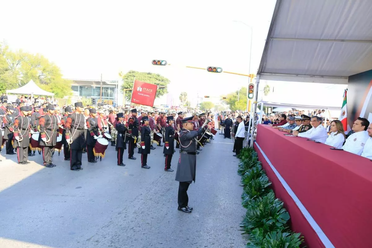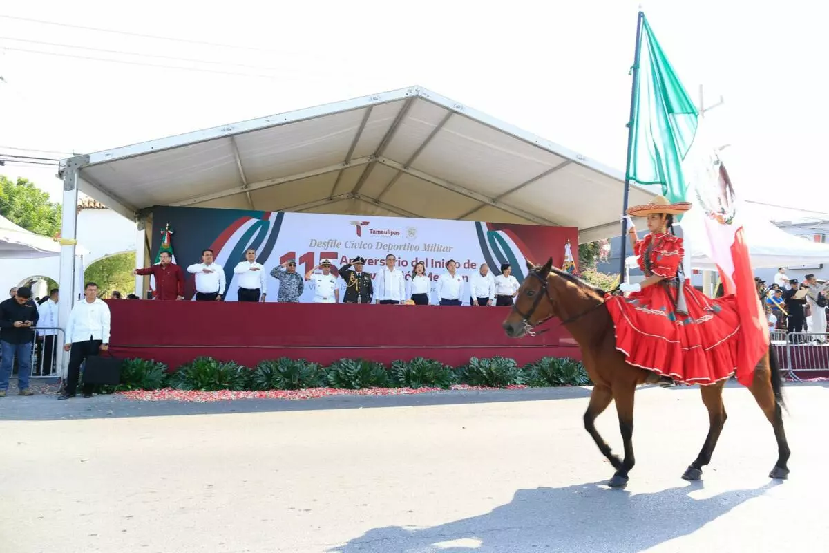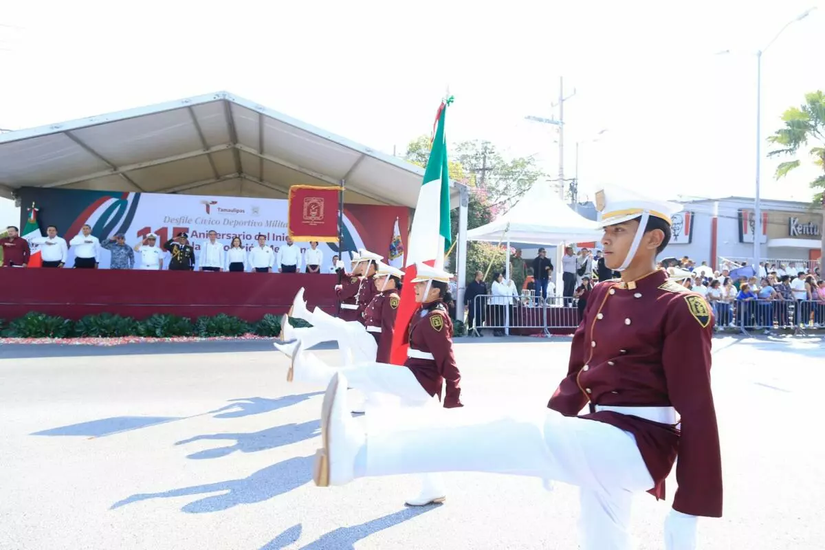 Presidida por el gobernador Américo Villarreal, la fiesta cívica transcurre en paz, con la participación de más de 3,500 estudiantes, militares y elementos de seguridad.