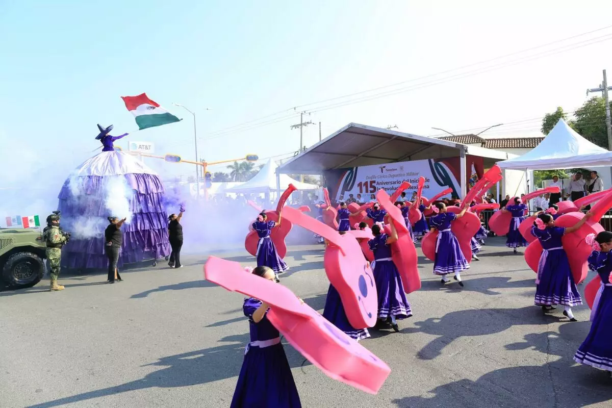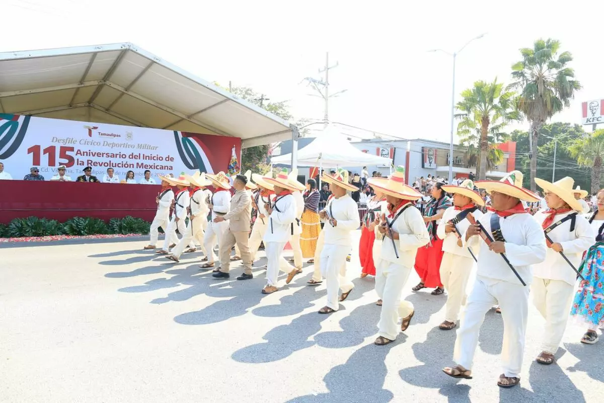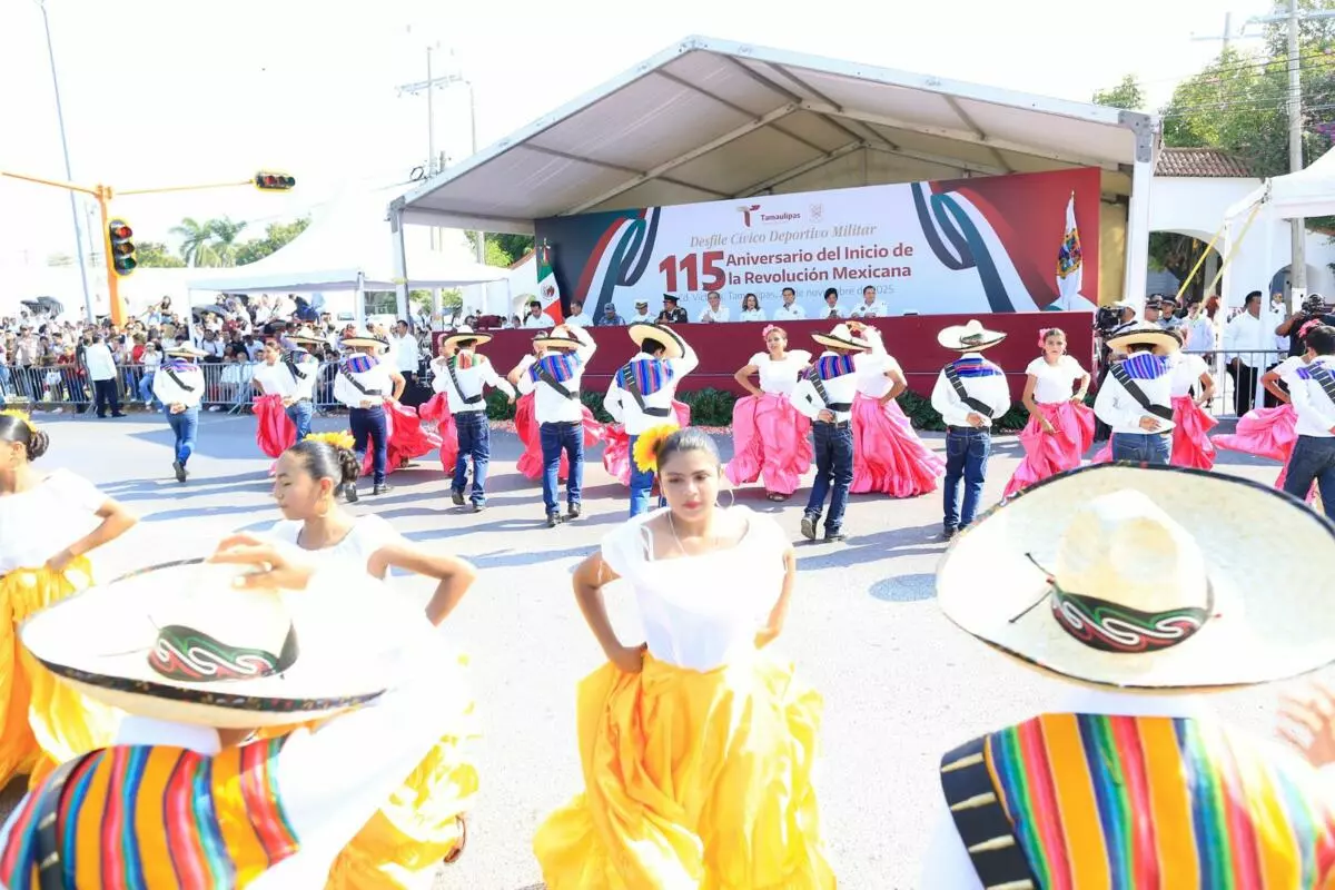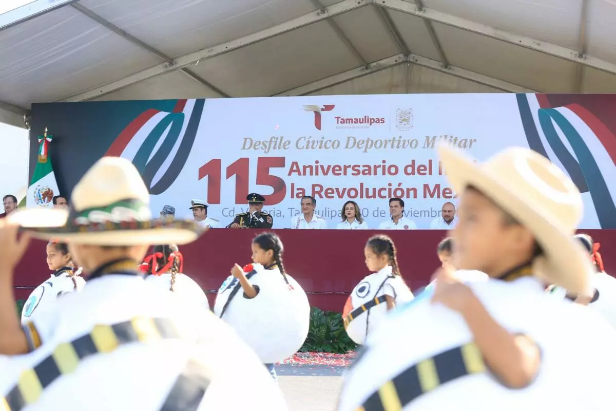 Presidida por el gobernador Américo Villarreal, la fiesta cívica transcurre en paz, con la participación de más de 3,500 estudiantes, militares y elementos de seguridad.