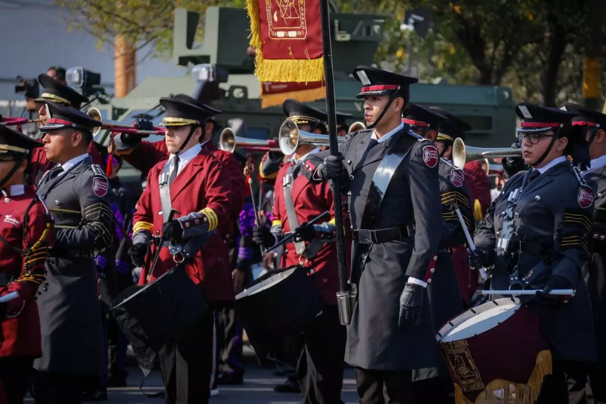 Ante la algarabía de miles de familias que se dieron cita para aplaudir el paso de los contingentes, también se sumaron 20 bandas de guerra, 54 conscriptos del Servicio Militar Nacional, 400 elementos de Protección Civil Estatal, 40 elementos de la Cruz Roja Mexicana y 13 cabalgantes.