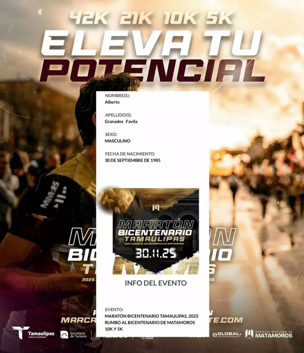 Los preparativos para la Carrera Bicentenario, uno de los eventos deportivos más esperados del año, avanzan con gran entusiasmo entre la comunidad matamorense. El alcalde Beto Granados confirmó que ya cuenta con su folio de participación y anunció que estará presente este 30 de noviembre, invitando a la ciudadanía a acompañarlo y encontrarse en la meta.