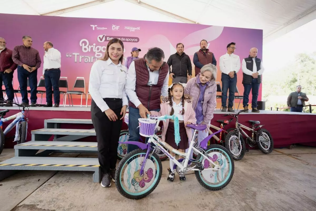 En un segundo momento, realizado en la plaza principal, se otorgaron 112 bicicletas a alumnas y alumnos de educación básica para brindarles un traslado más seguro hacia sus escuelas. Esta entrega fue acompañada por representantes de los tres órdenes de gobierno, quienes respaldaron las acciones de bienestar impulsadas a través de las brigadas Transformando Familias.