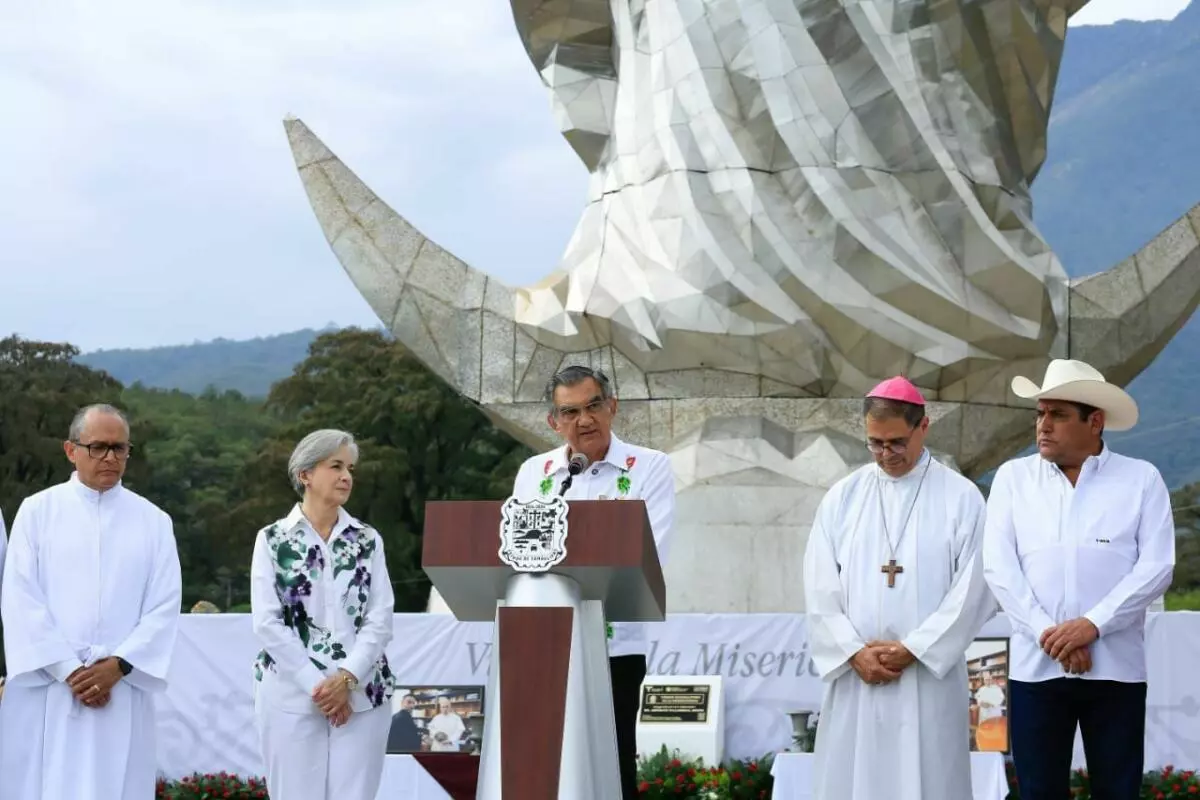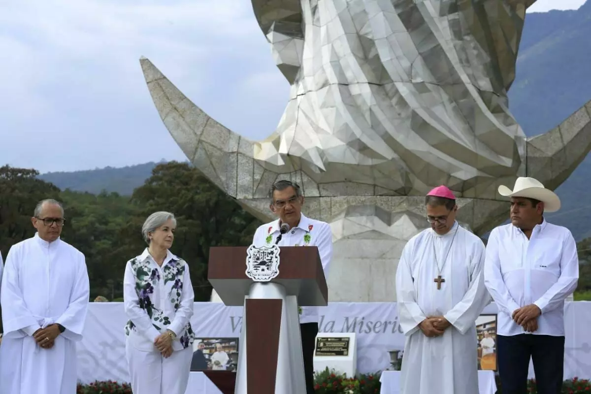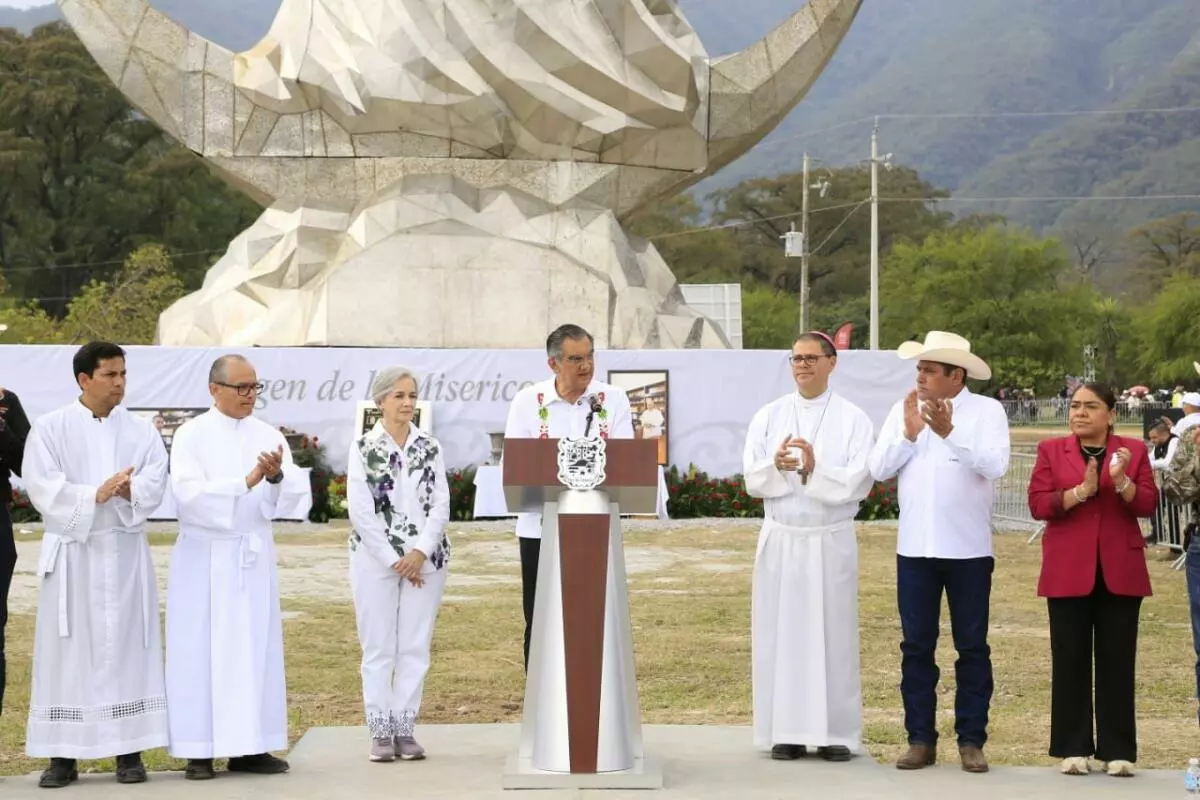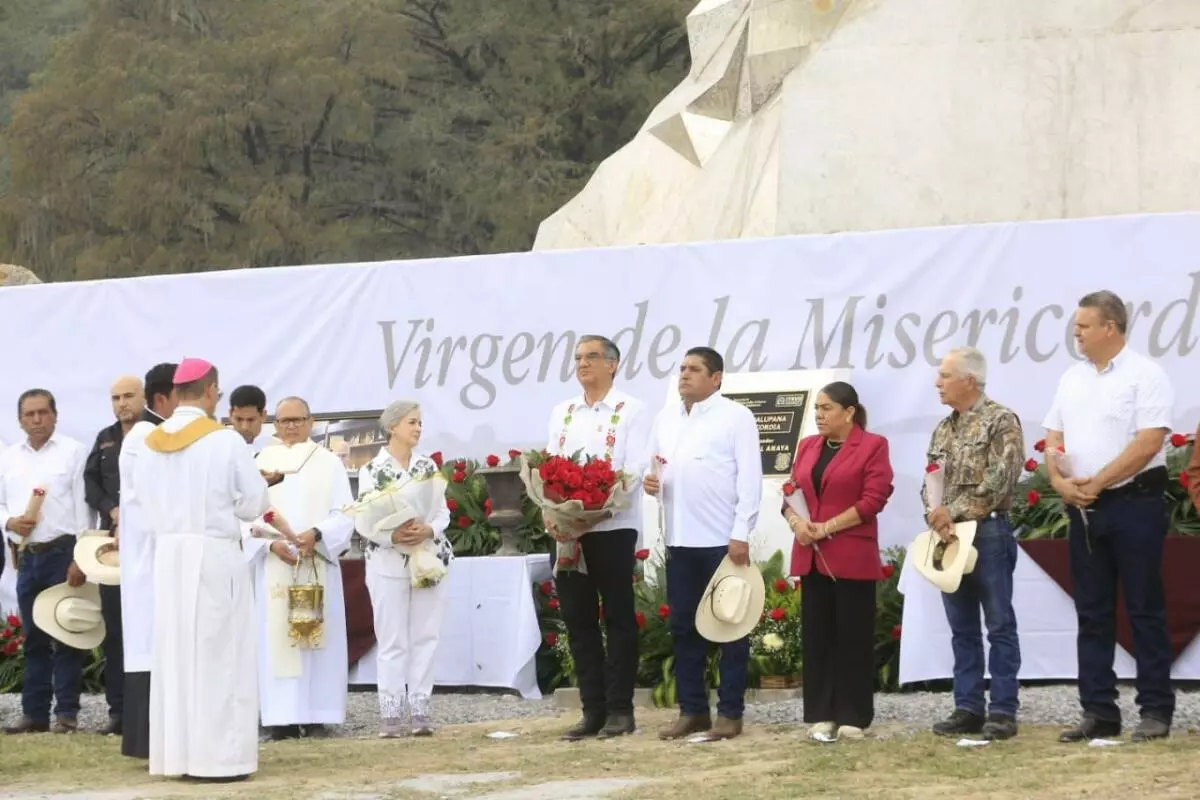 A partir de este día, Tamaulipas cuenta con un nuevo espacio de paz, fe y espiritualidad que contribuirá a fortalecer la unidad, la fraternidad y la esperanza, expresó el gobernador Américo Villarreal Anaya al entregar la escultura monumental de la Virgen de la Misericordia, en El Chorrito, municipio de Hidalgo.