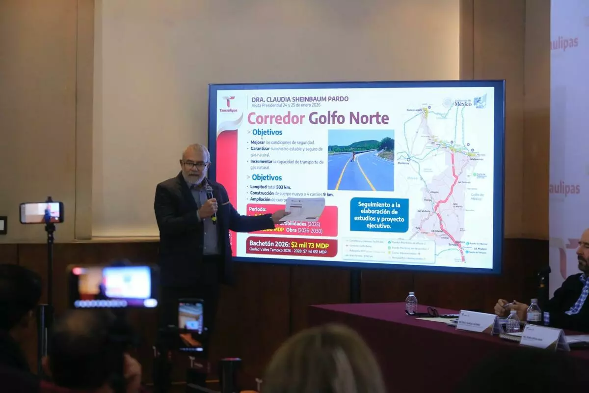 Al exponer las acciones que se realizarán con apoyo del gobierno federal, el secretario de Obras Públicas, Pedro Cepeda Anaya, se refirió a la inversión por 138 mil 600 mdp en la construcción del tren de pasajeros, tramo Saltillo-Nuevo Laredo, así como al Corredor Golfo-Norte, cuya inversión entre 2026 y 2030 llegará a 39 mil 880 mdp para construir un nuevo cuerpo carretero de cuatro carriles, y al Bachetón 2026, que representa una inversión de 2 mil 073 MDP en el eje Valles-Tampico.