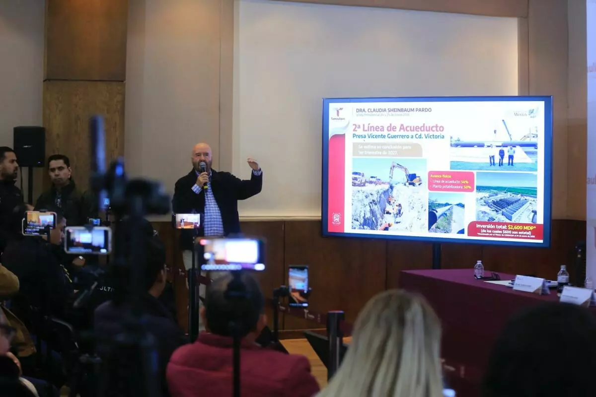 Por su parte, Raúl Quiroga Álvarez, secretario de Recursos Hidráulicos para el Desarrollo Social, mencionó la construcción de la segunda línea del acueducto en Ciudad Victoria, con una inversión de 2 mil 600 MDP por parte de la Conagua y del Gobierno estatal, así como la tecnificación de los Distritos de Riego 025 y 026, con una inversión total de 7 mil 164 mdp, y la Planta Internacional de Tratamiento de Aguas Residuales en Nuevo Laredo, con un avance físico del 70 por ciento, además del proyecto del Emisor de Retorno de Aguas Residuales, que prevé una inversión de 8 mil MDP.