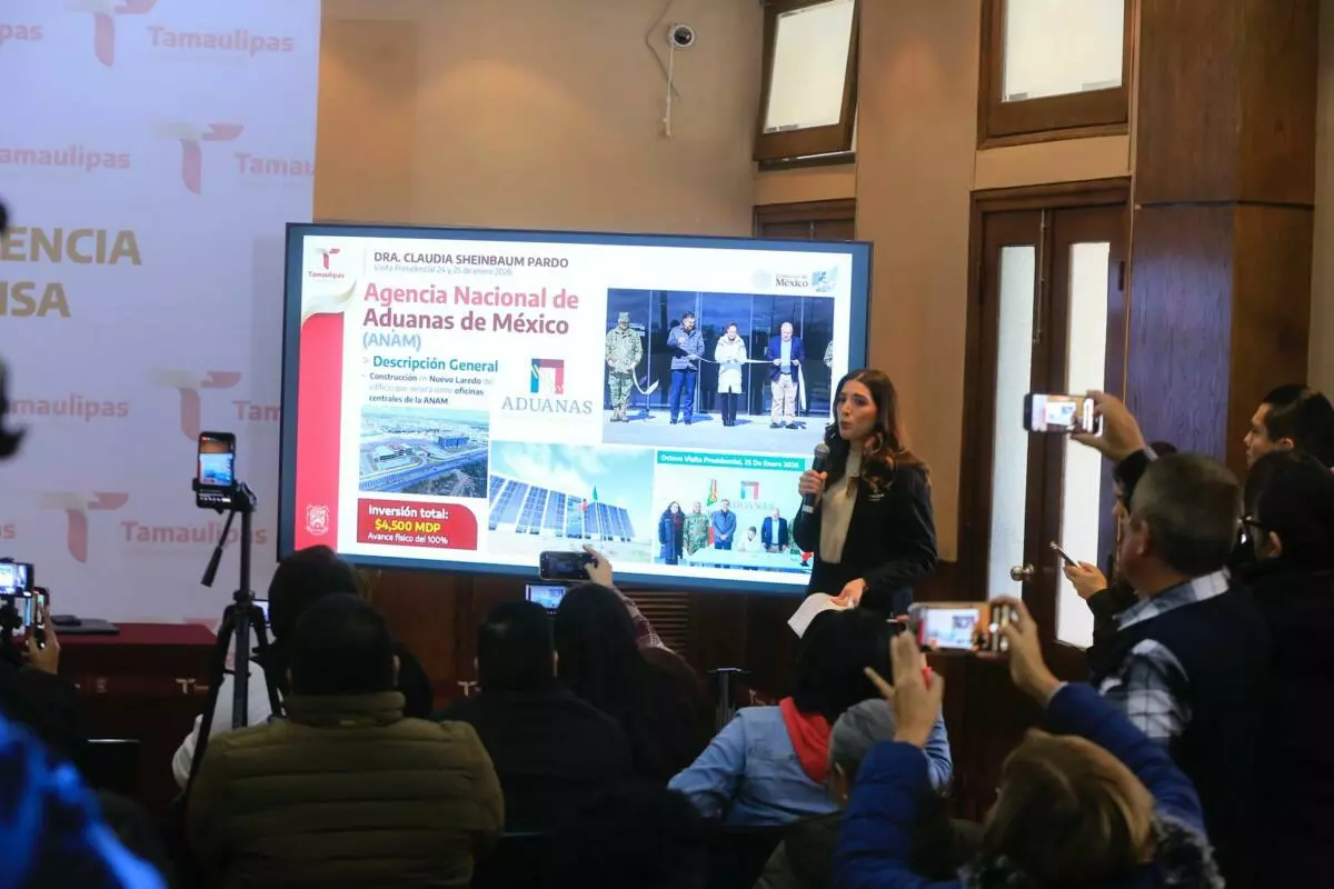 A nombre de la Secretaría de Economía, la subsecretaria de Inversiones, Anabell Flores Garza, se refirió a la inauguración de la Agencia Nacional de Aduanas y al Polo de Desarrollo en el municipio de Altamira, que confirma el papel estratégico de Tamaulipas en el desarrollo económico y productivo del país.