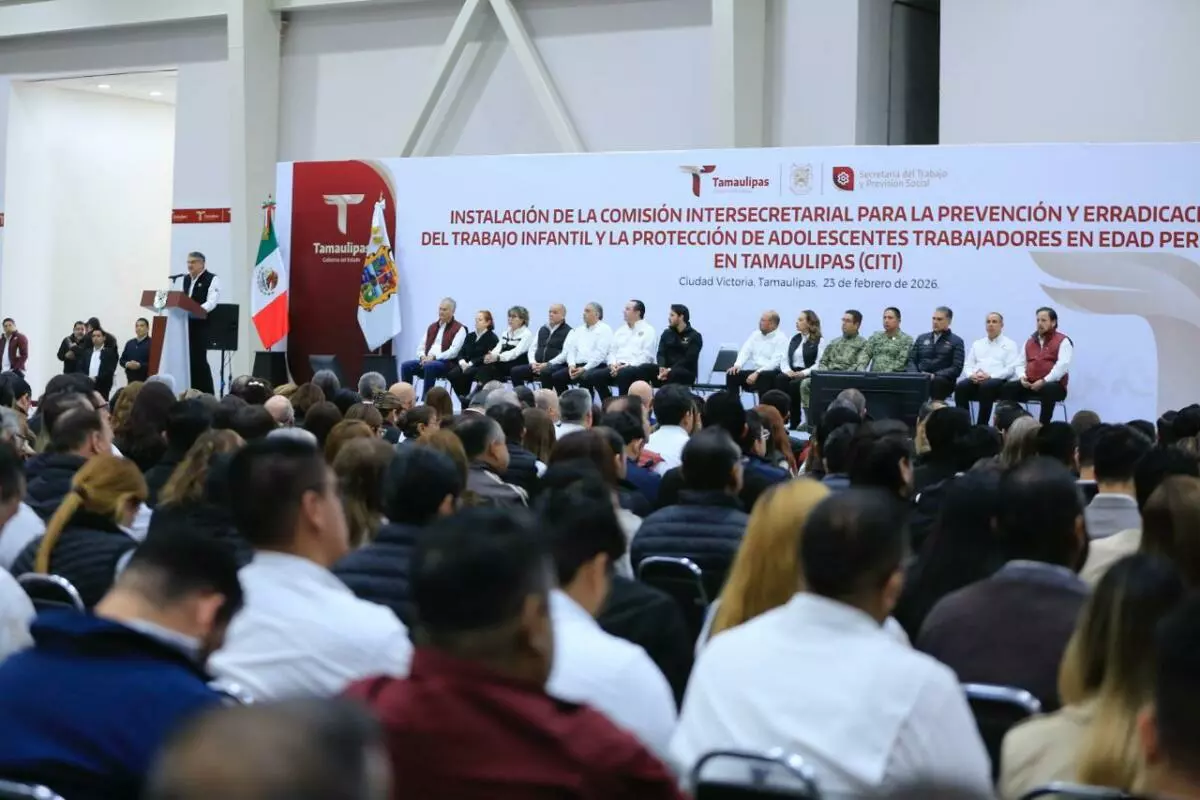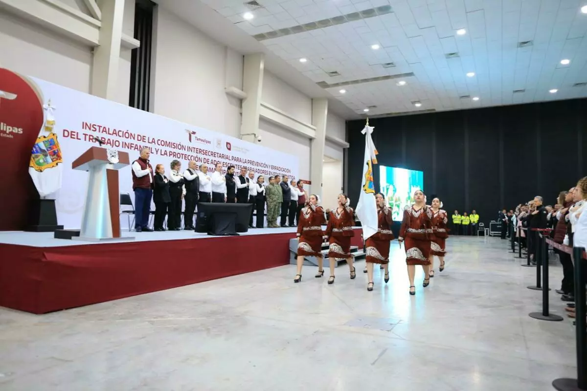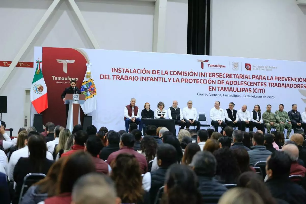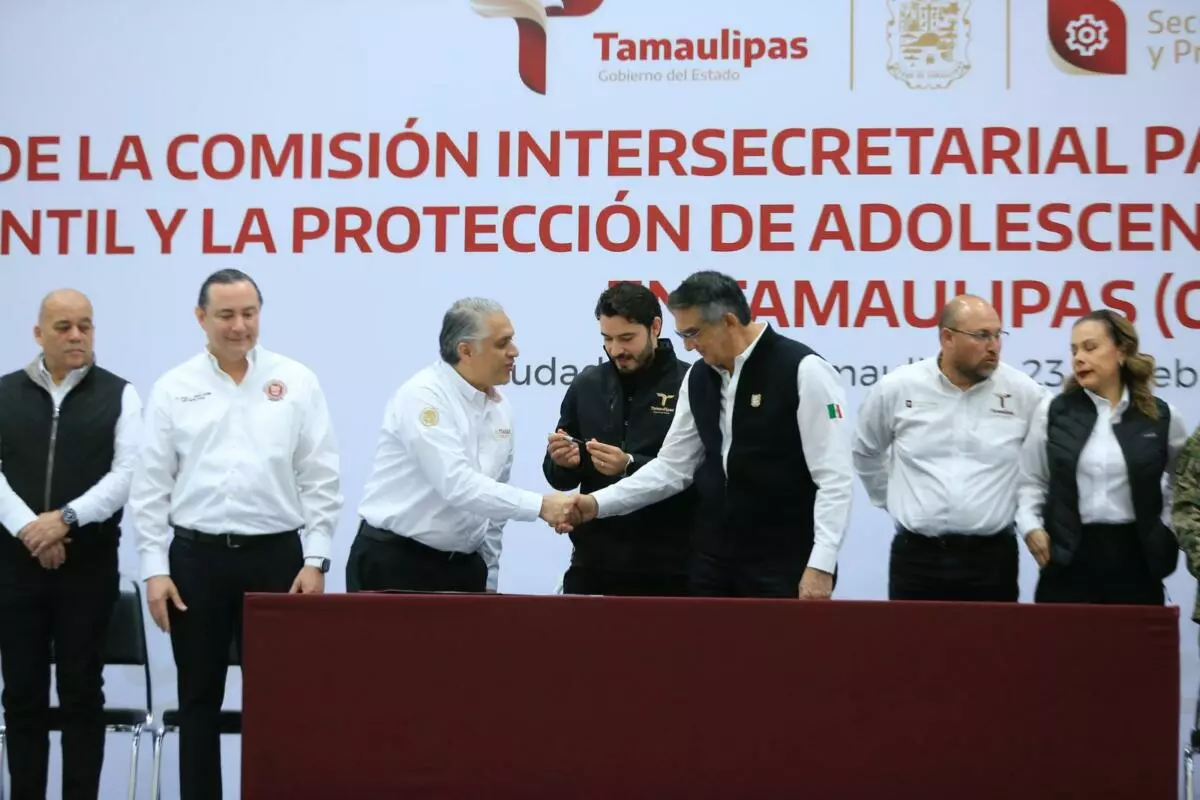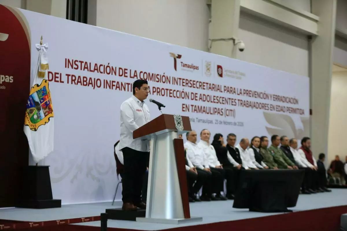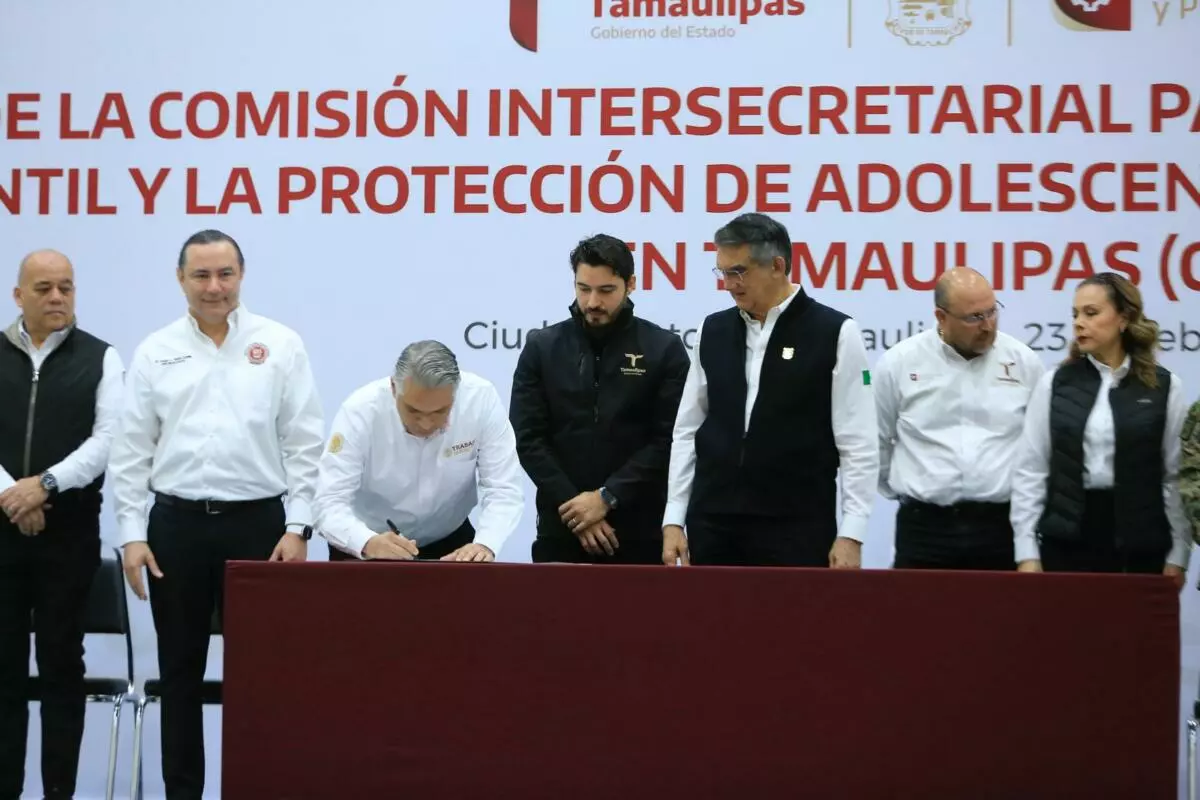 Durante la ceremonia cívica de honores en el Polyforum de esta capital, el gobernador, junto con el secretario del Trabajo, Gerardo Illoldi, y el titular de la Oficina de la Representación Federal del Trabajo en Tamaulipas, Iván Karim Rocha Picazo, firmó el acuerdo que da marco legal y sustento a esta comisión, que representa un mecanismo permanente de coordinación entre dependencias estatales, sectores sociales y la iniciativa privada para atender de manera integral el fenómeno del trabajo infantil, desde un enfoque de derechos humanos y bajo el principio del interés superior de la niñez.