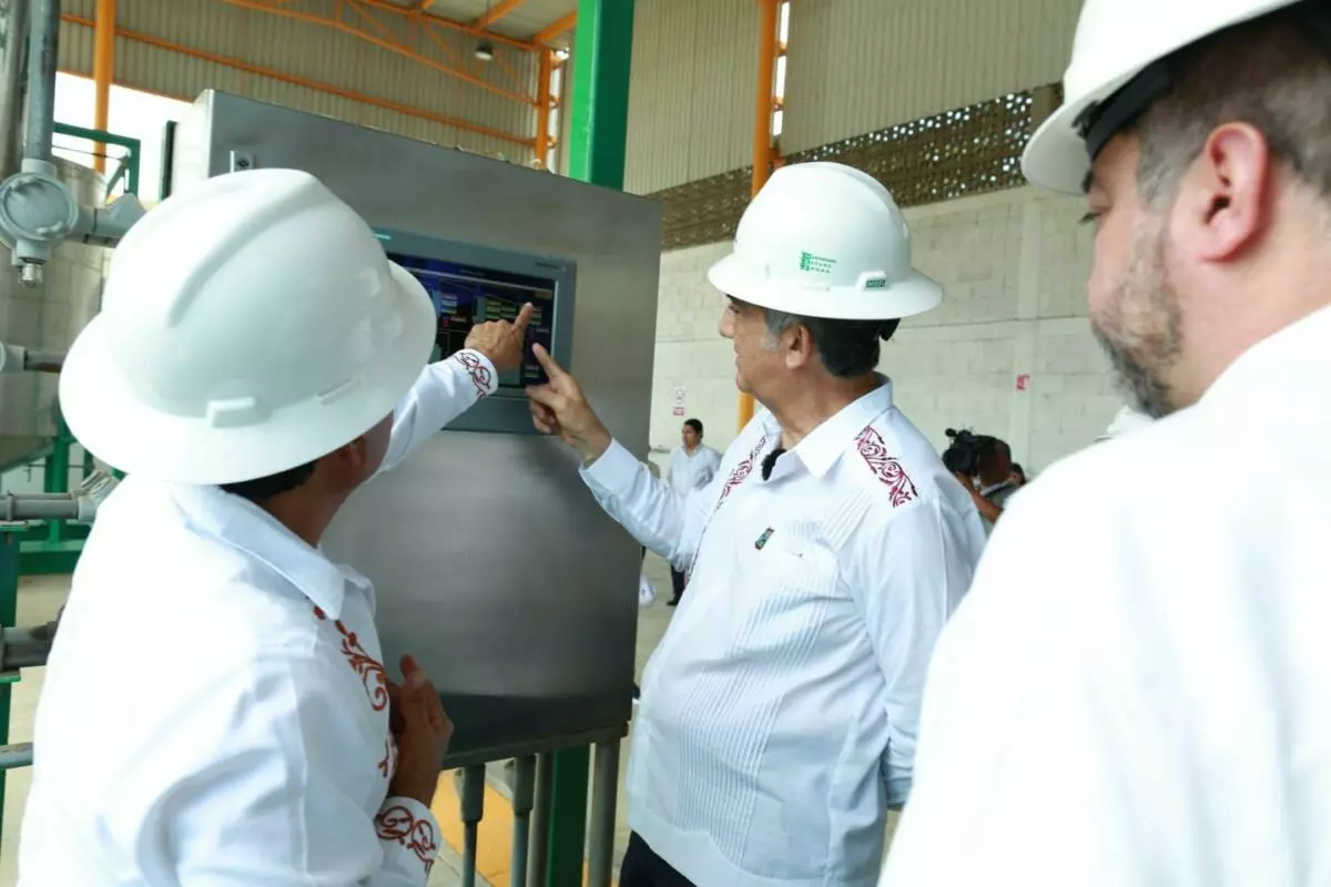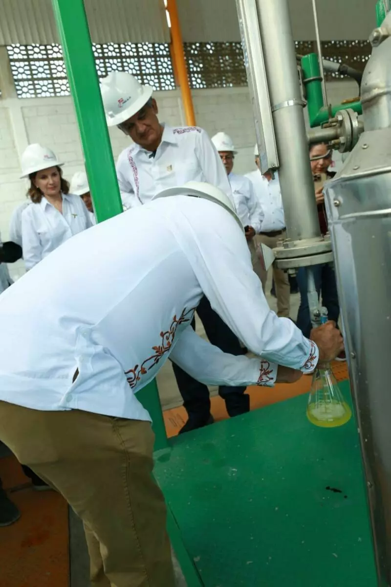 Durante la visita, el mandatario estatal y el subsecretario federal estuvieron acompañados por el director general del Grupo Industrial Águila, Juan Ruperto Rodríguez, quien ofreció una explicación detallada sobre el funcionamiento de la planta, la cual opera bajo un proceso de pirólisis para convertir desechos plásticos en cinco tipos de combustibles: gasolina, diésel, queroseno, parafina y gas, proceso del cual fueron testigos.