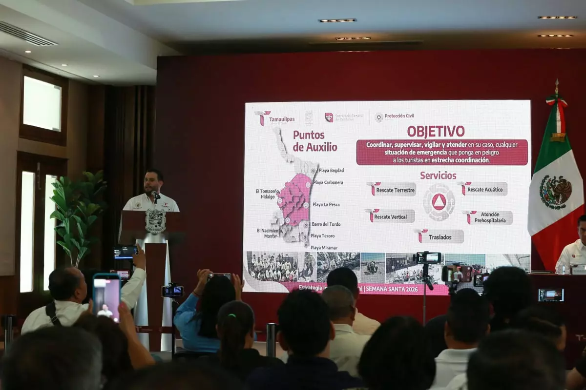 Durante la presentación de la Estrategia Interinstitucional de Seguridad y Asistencia Turística, Semana Santa 2026, que estará en operación hasta el próximo 18 de abril, y acompañado por los secretarios de Seguridad Pública, Turismo, el coordinador estatal de Protección Civil y el titular del Centro de Regulación de Urgencias Médicas, el gobernador indicó que se trata de un amplio despliegue que contempla la movilización de elementos, recursos institucionales y distintos equipos para brindar la mejor atención a nuestros visitantes.