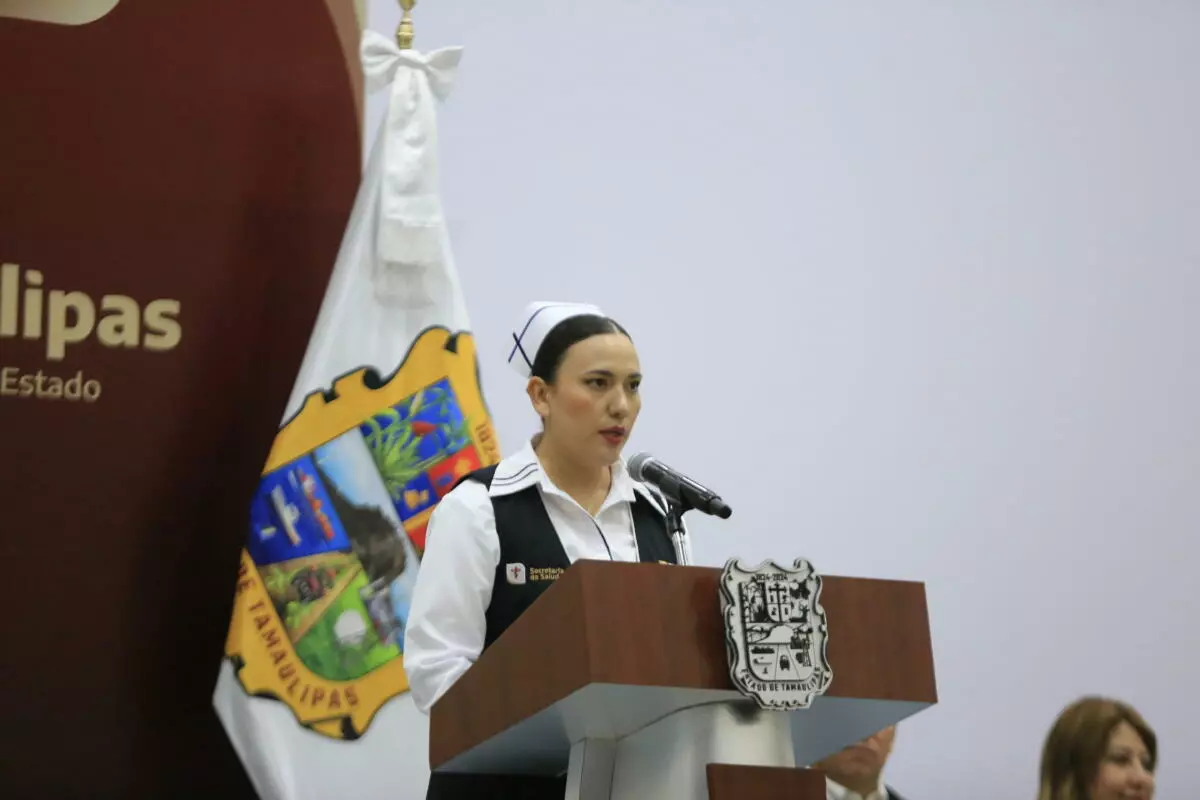 A nombre de las y los galardonados, Almarcelia Cárdenas Guardado recordó sus inicios como enfermera en enero de 1965 en el Centro de Salud de Ciudad Victoria y contó anécdotas y recuerdos de su trayectoria de 60 años en esta noble profesión.