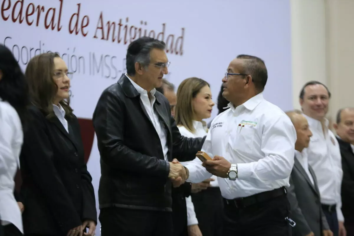 Al presidir la ceremonia de entrega de medallas por años de servicio a trabajadoras y trabajadores de las Secretarías de Salud y de la Coordinación Estatal del IMSS-Bienestar, el gobernador hizo un reconocimiento a quienes, dijo, son sus compañeros y compañeras de gremio.