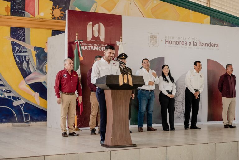 El alcalde Beto Granados encabeza la colocación de la primera piedra en el CBTIS 135 de Matamoros.