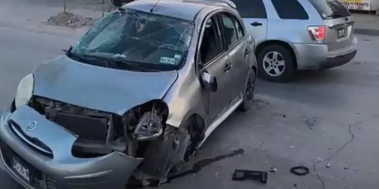 Auto derriba cerca metálica y se mete sin control a secundaria en Matamoros, Tamaulipas