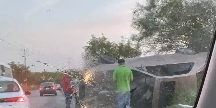 Vuelca vehículo por exceso de velocidad en Matamoros, Tamaulipas