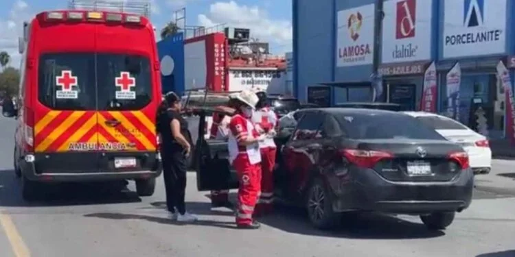 Paramédicos auxilian a mujer tras choque por alcance en Matamoros, Tamaulipas