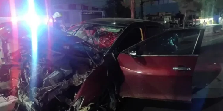 Choque deja vehículo destrozado y poste dañado en Matamoros, Tamaulipas
