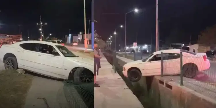 Conductora pierde el control y casi cae a canal en el Libramiento Emilio Portes Gil de Matamoros, Tamaulipas