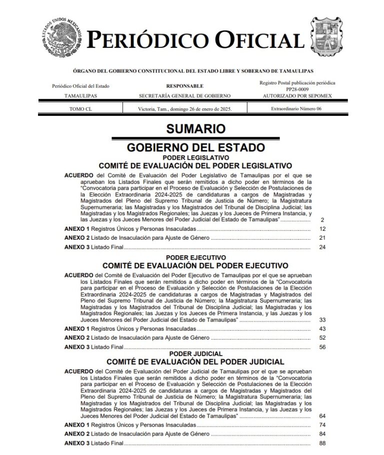 Tamaulipas marca precedente al revelar listas de candidatas y candidatos al Poder Judicial estatal