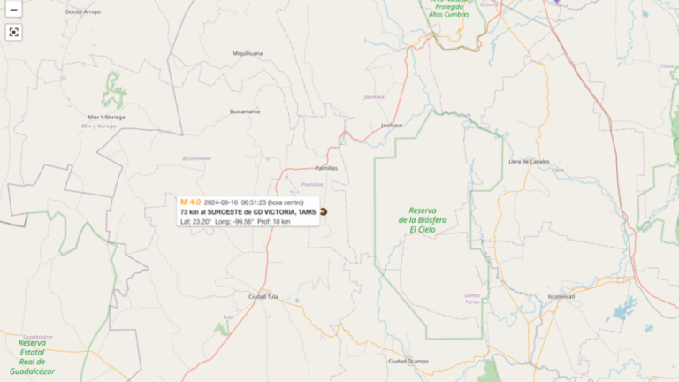 Se registra sismo magnitud 4.0 en Tamaulipas