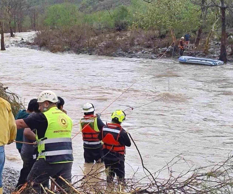 Rescatan a cuatro personas atrapadas por creciente del río Chihue en Jaumave