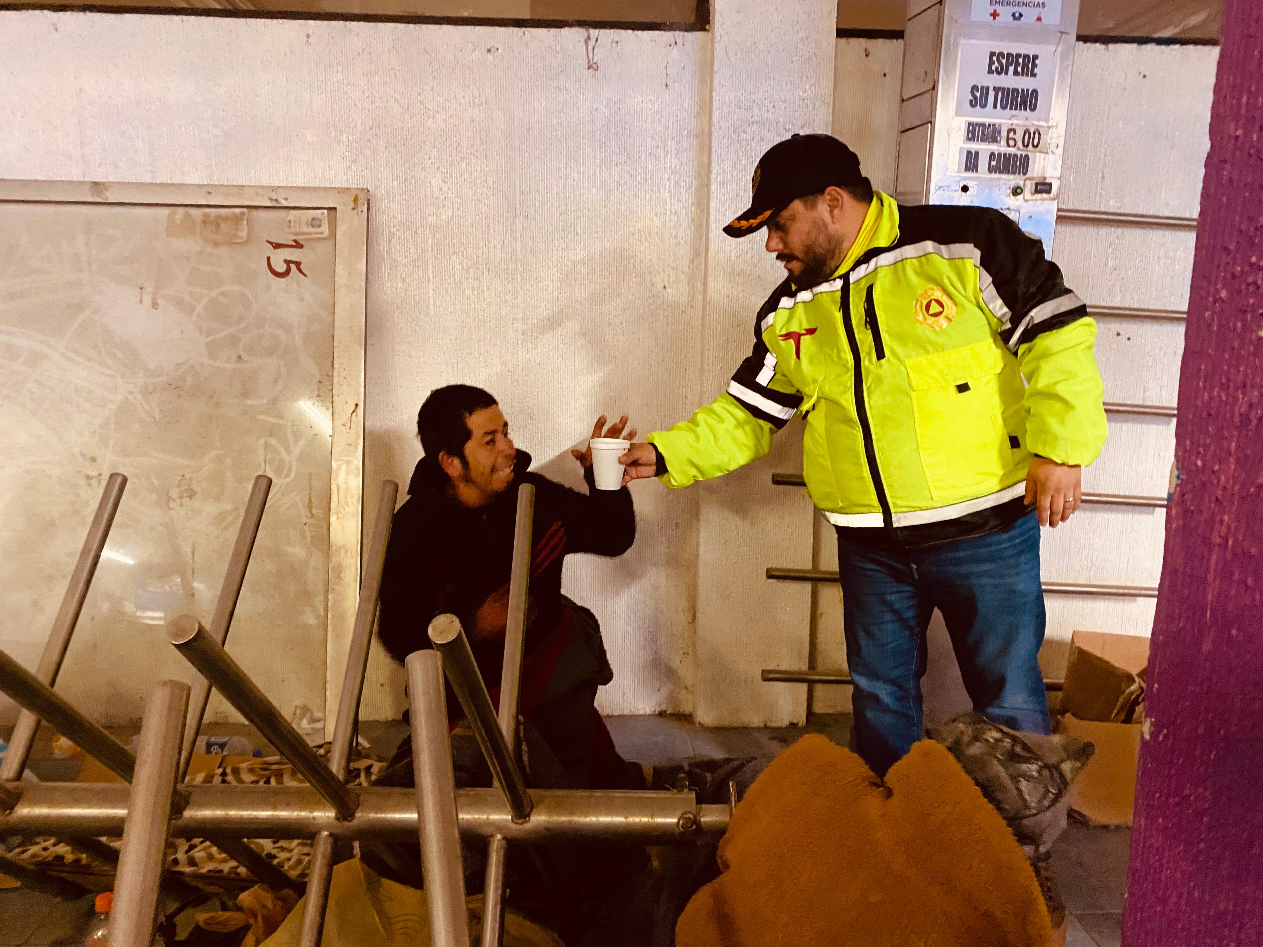 La Guardia Estatal de Género brinda alimentos y bebidas calientes a viajeros en Tamaulipas