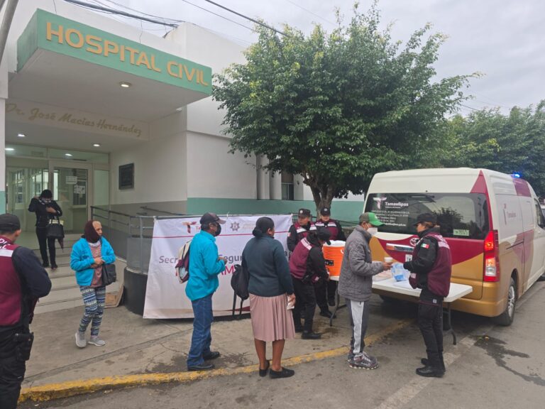 Guardia Estatal de Género entrega alimentos y bebidas calientes a familias en hospital de Tampico