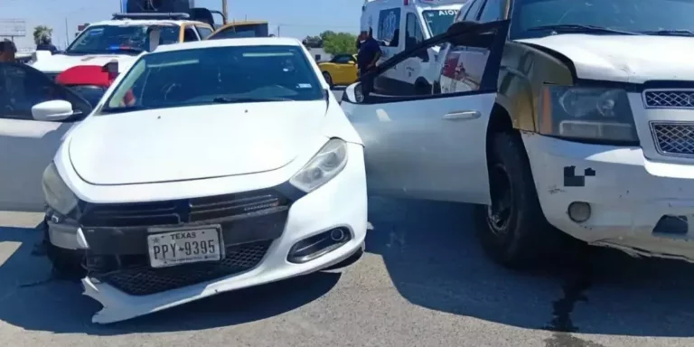 Choque entre vehículo y camioneta deja daños en Reynosa, Tamaulipas