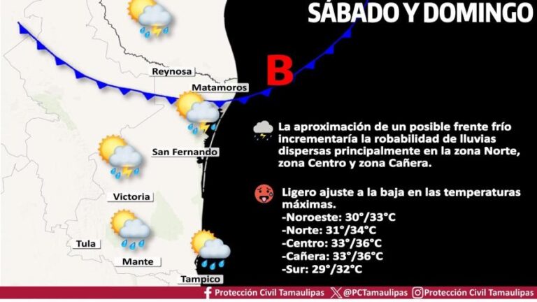 Frente frío no.2 traerá lluvias este fin de semana, pero no gran descenso de temperatura